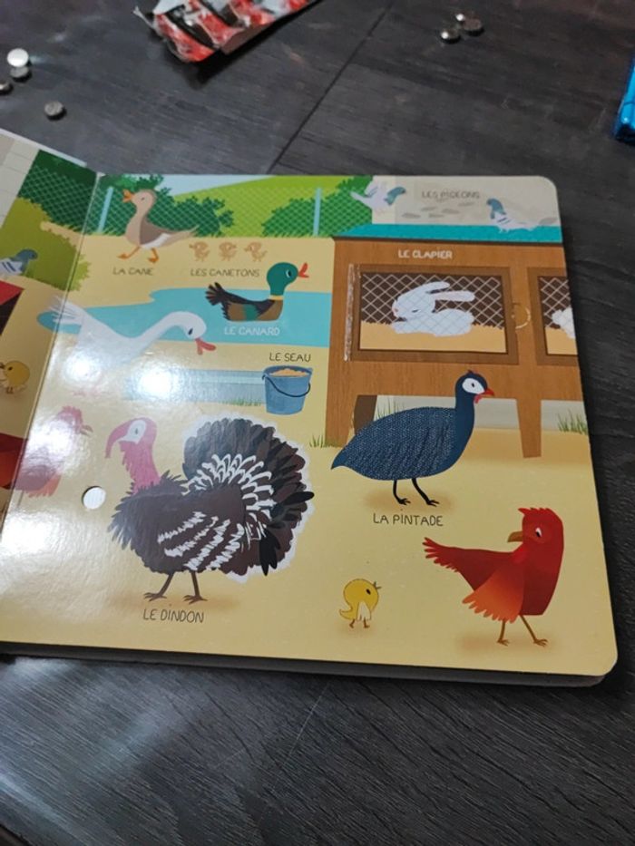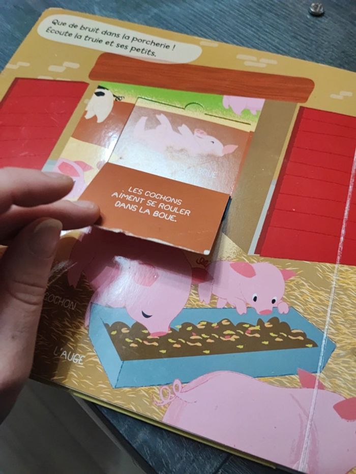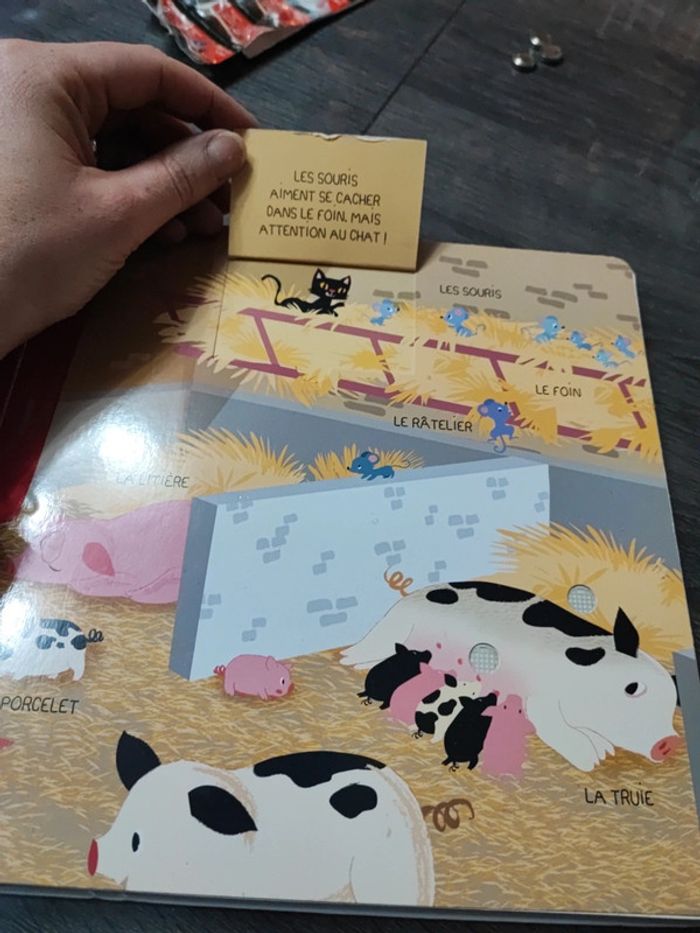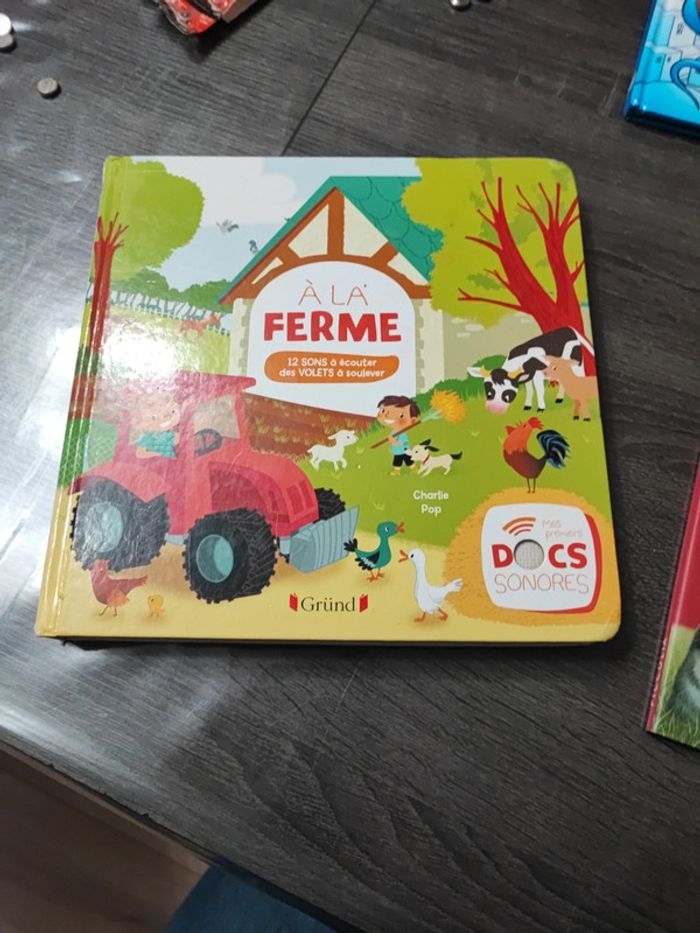 Livre a la ferme Volets a soulever Vendu sans pile, d'où le petit prix car je ne suis pas sur qu'il fonctionne encore au niveau du son. Très belles images dans ce livre pour les touts petits