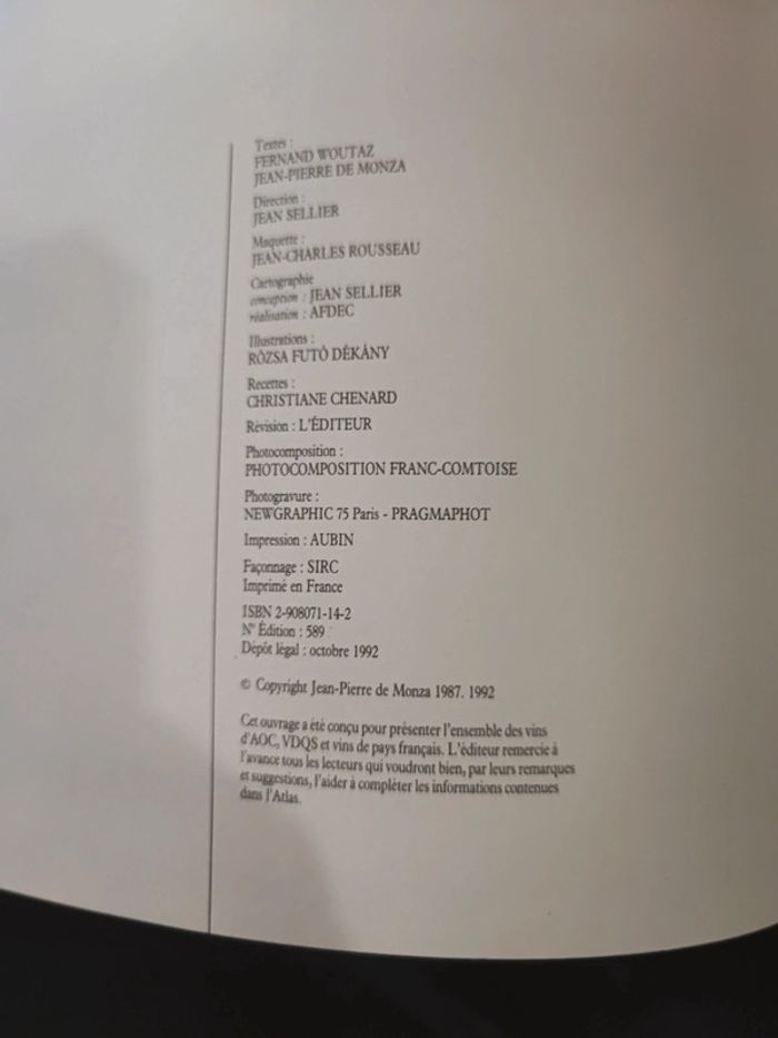 l'Atlas des vins de France 1992 de monza
