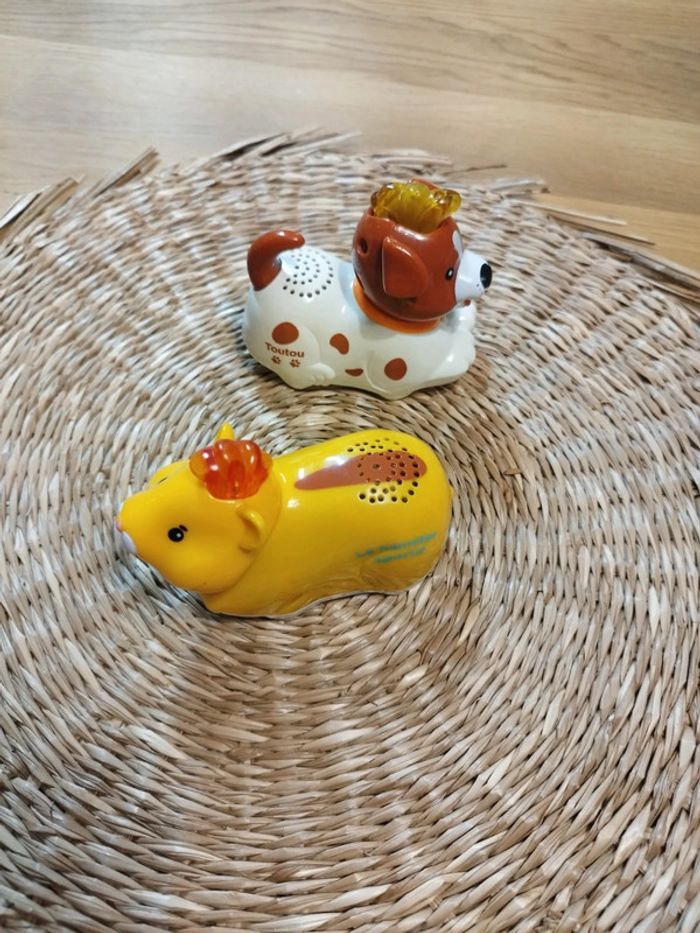 Lot de 2 Tut tut Animo de la marque VTech, en très bon état : Cliff, le hamster sportif et Toutou, le chien tout fou. Fonctionne avec des piles, non fournies. N'hésitez pas à faire des lots 🌱