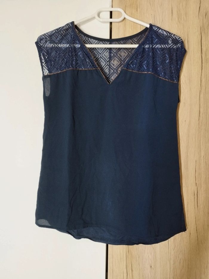 T-shirt bleu marine à liseré doré - photo numéro 1