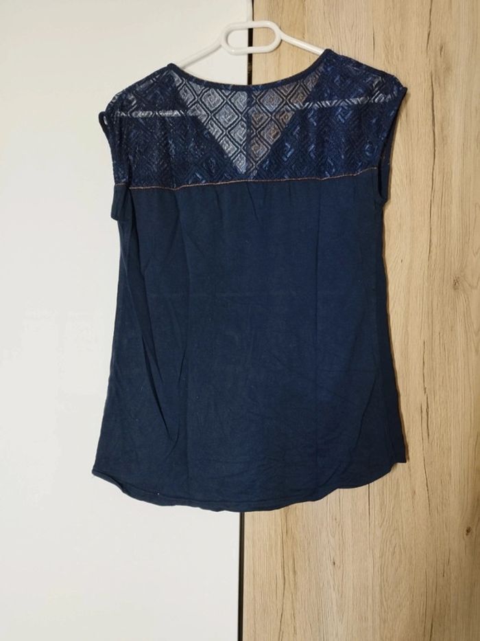 T-shirt bleu marine à liseré doré - photo numéro 3