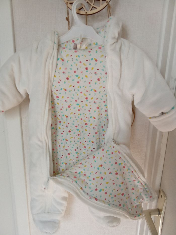Combinaison, combipilote,  bébé blanche, très  chaude hiver orchestra de la naissance à 3 mois, bébé fille et garçon, mixte, polaire, motif - photo numéro 3