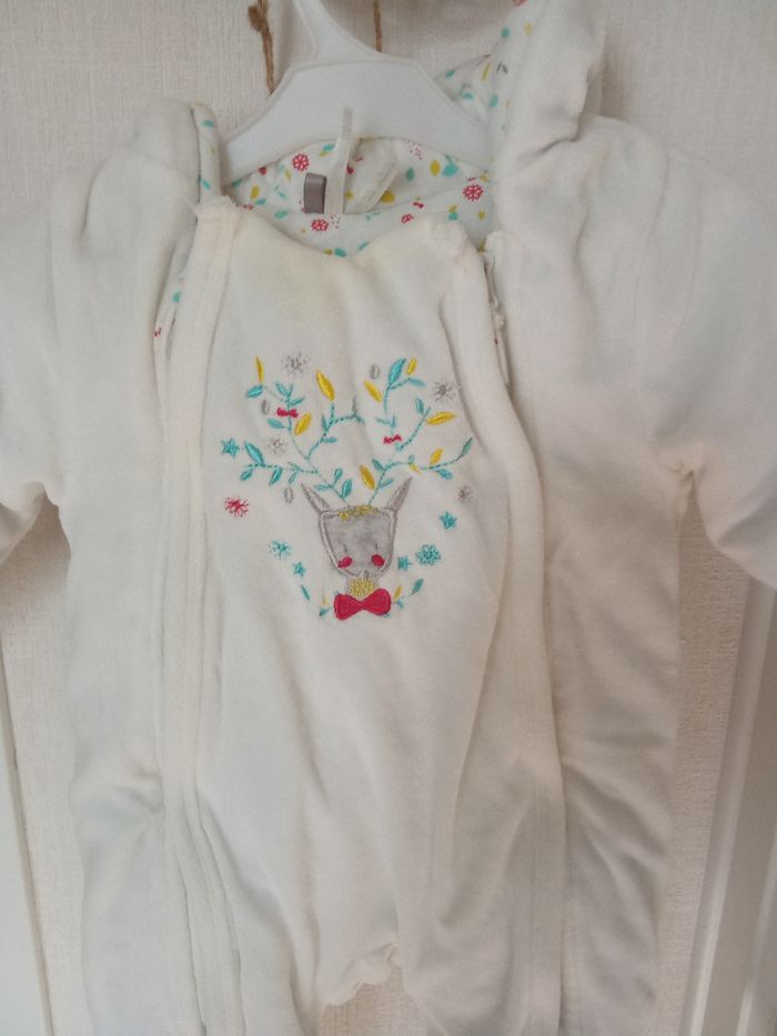 Combinaison, combipilote,  bébé blanche, très  chaude hiver orchestra de la naissance à 3 mois, bébé fille et garçon, mixte, polaire, motif - photo numéro 2