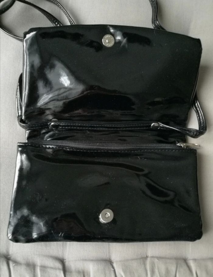 Pochette vernie noire noeud avec bandoulière amovible - photo numéro 4