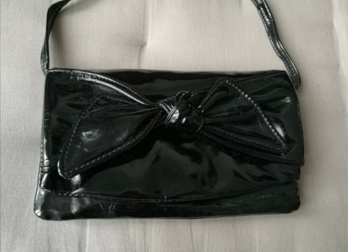 Pochette vernie noire noeud avec bandoulière amovible - photo numéro 1