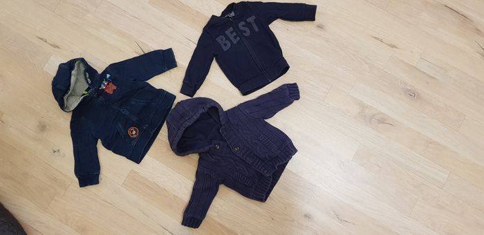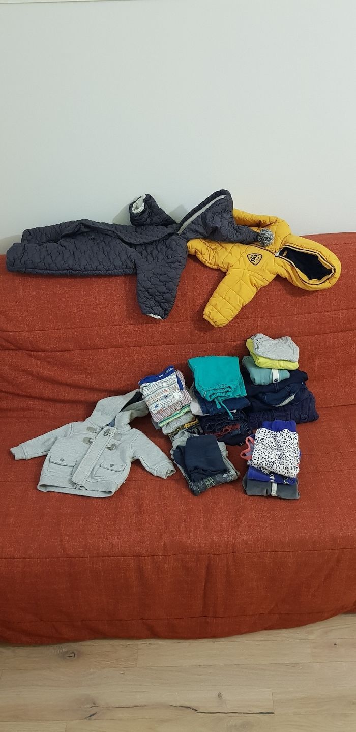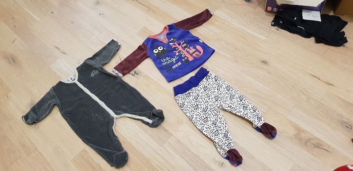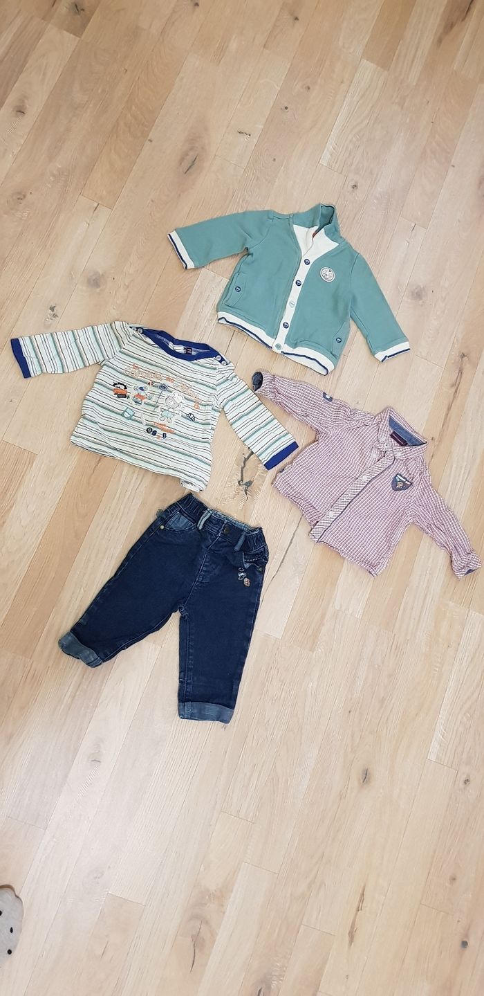 Vente en lot ou séparés, merci de me dire le plus précisément possible ce que vous voulez. Habits 6 mois Garcons fille unisexe Bon ou très bon état 5 pulls vestes 6 T-shirts 1 chemise 5 pantalons + 1 salopette 2 pijamas 3 bodys 1 euros par vêtement ou 15euros le lot + Ensemble Sergent Major 10euros Veste d'été 5 euros Manteau d'hiver 10euros Combipilote 15euros (Annonces individuelles aussi) Lot complet 50euros Autre annonce habits 6 mois dans mon dressing