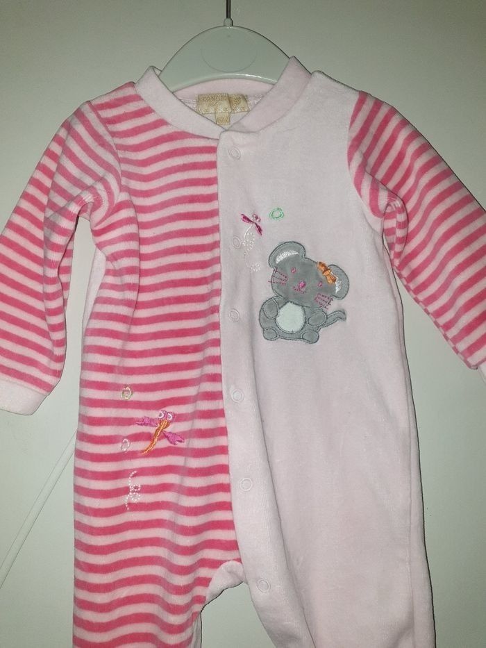pyjama en velours rayé rose clair, en parfait état comme neuf. Taille 6 mois Gémo #6moissevy57