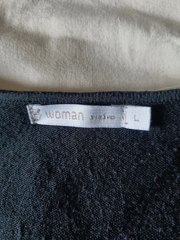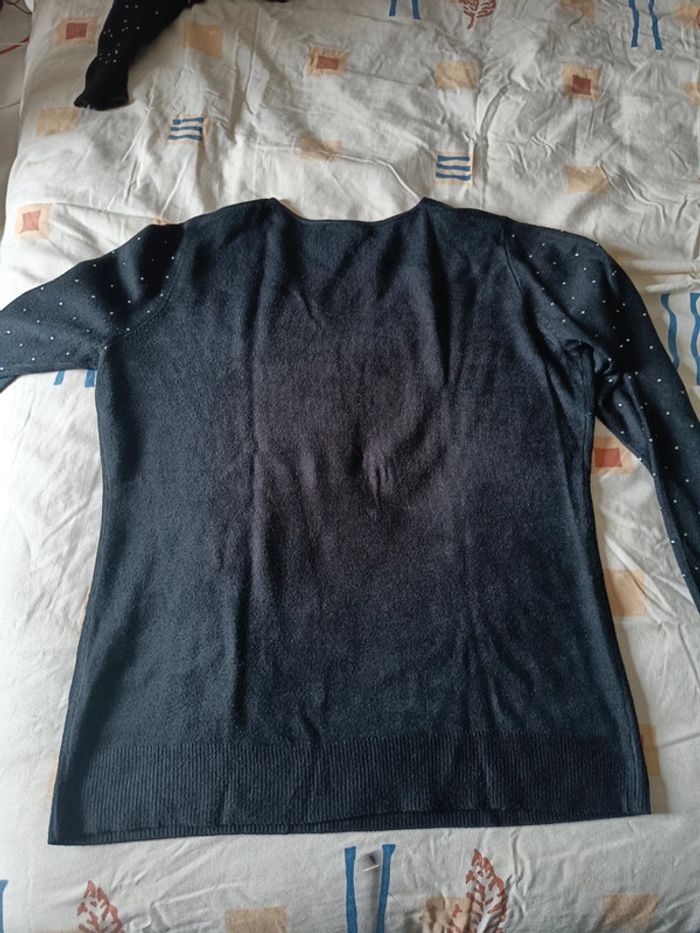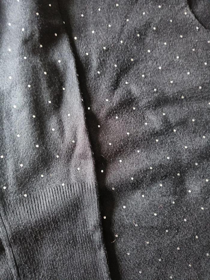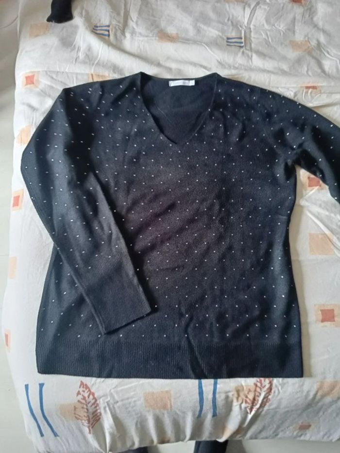 Pull noir moucheté de perles encolure en v