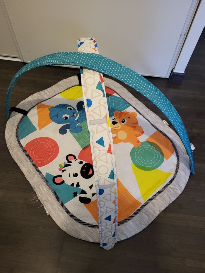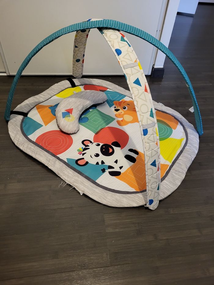 Tapis d'éveil "baby einshtein" avec petit coussin pour mettre bébé sur le ventre. Trés bon état, peu servis.