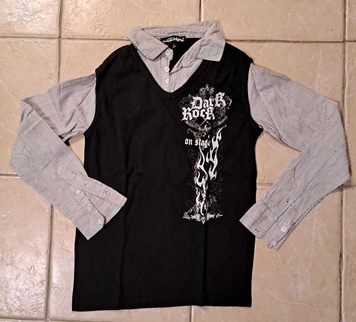 Vends un haut à manches longues avec haut de chemise intégré en 12 ans propre, lavé, repassé Comme neuf, très peu porté 3 E
