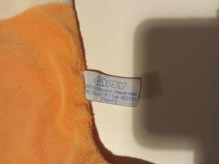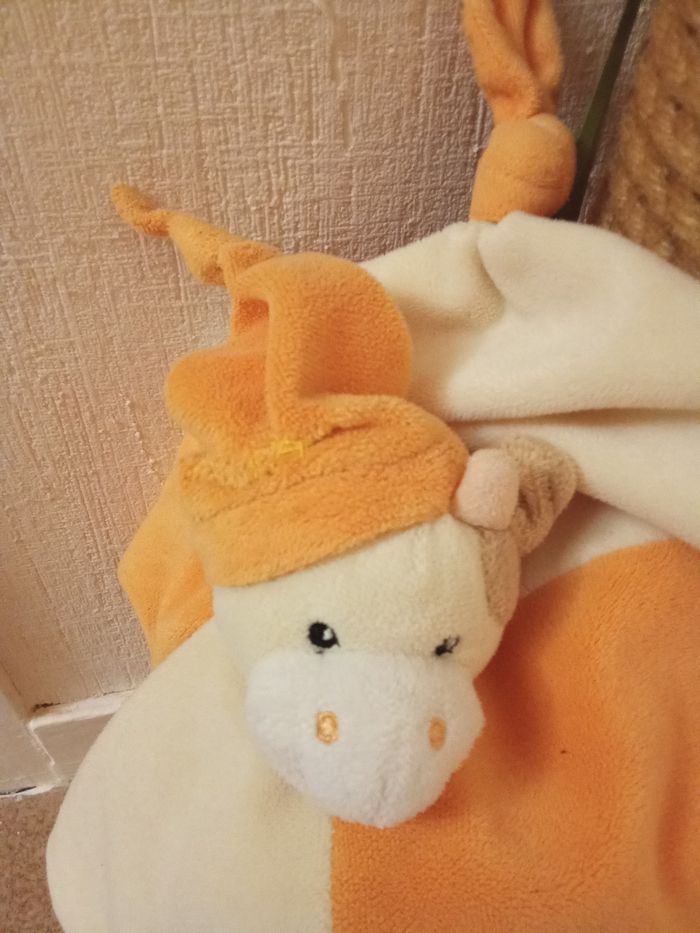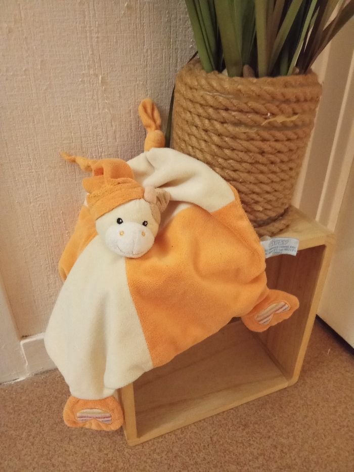 Doudou mouchoir , carré, motif girafe gipsy orange, jaune , mixte, pattes, étiquette - photo numéro 5