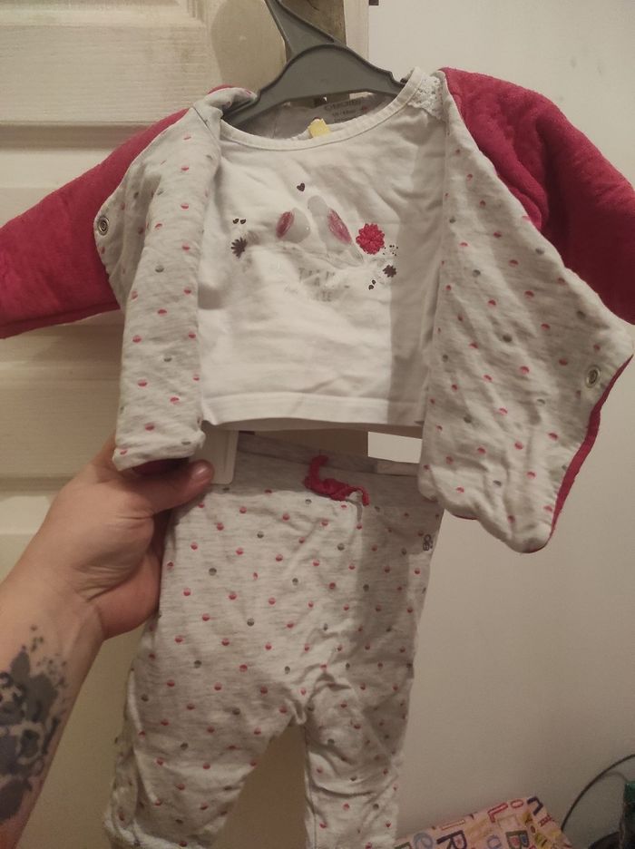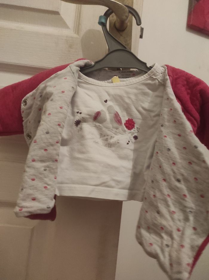 Veste et pantalon obaibi 1 mois Maillot Gémo 1 mois Très bon état juste une micro tâche sur le pantalon qui se voit a peine (voir photos 7)
