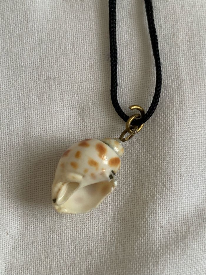 Collier noir avec coquillage en pendentif