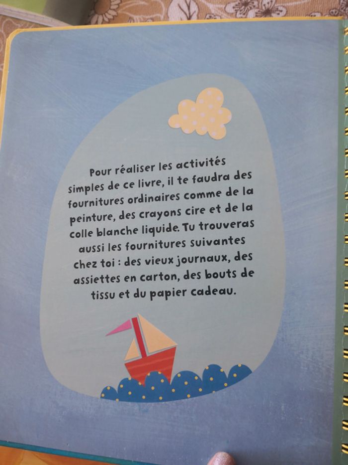 Livre super sympa pour créer des activités manuelles avec les enfants il est en excellent état à l'intérieur pas de tâches la juste un petit bout de la couverture qui est un petit peu déchiré voir photos