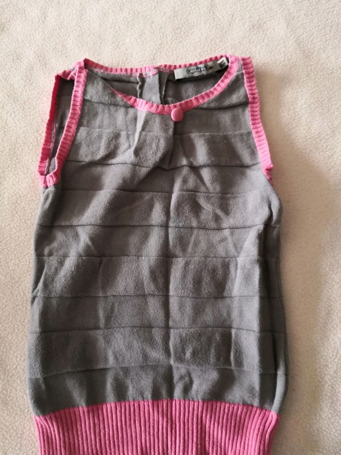 Pull sans manches rose et gris - photo numéro 1