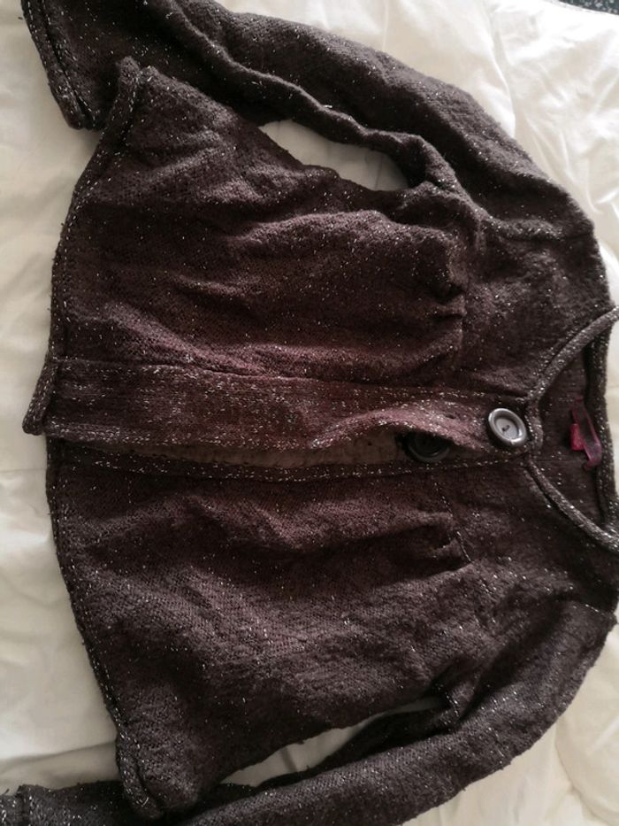 Porté et légèrement abîmé sous le second bouton. Marron brillant