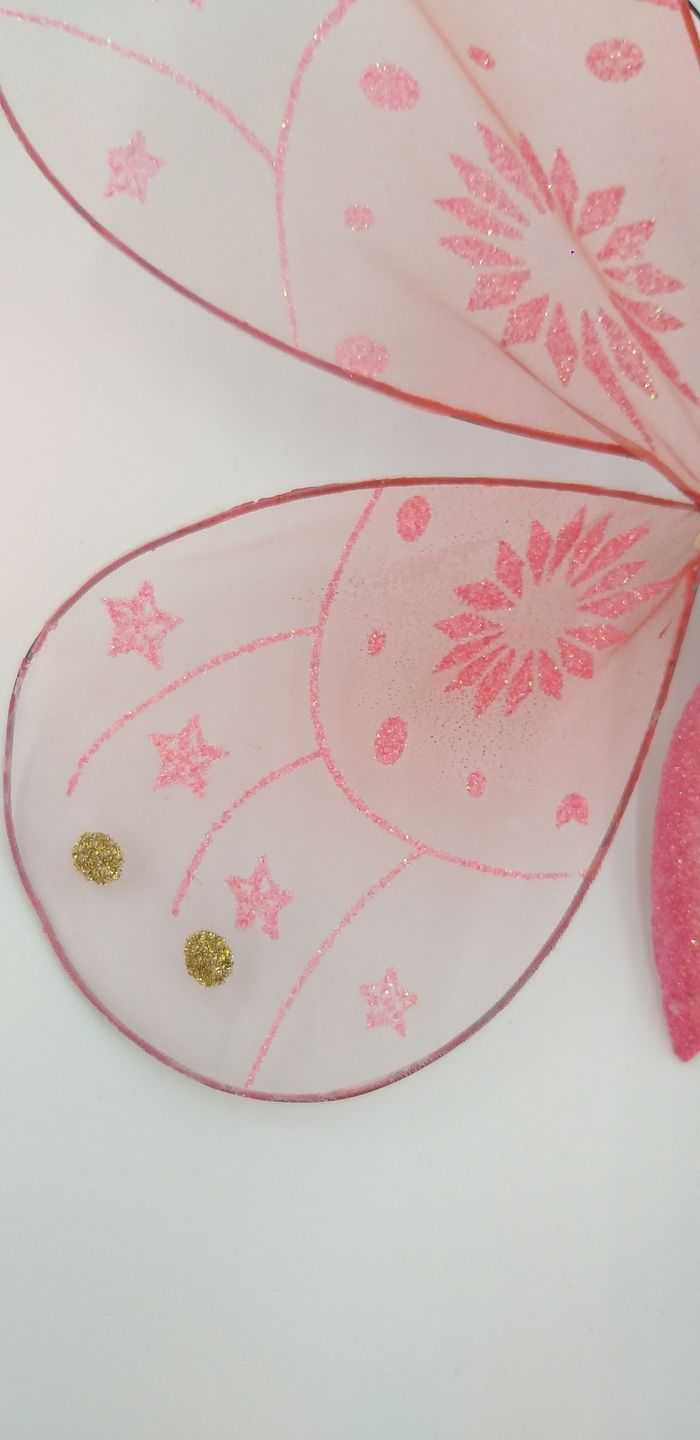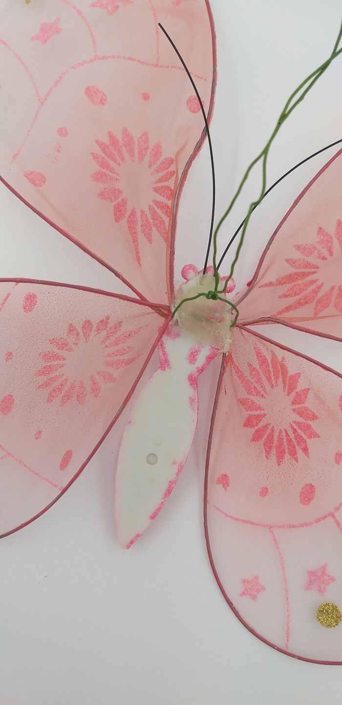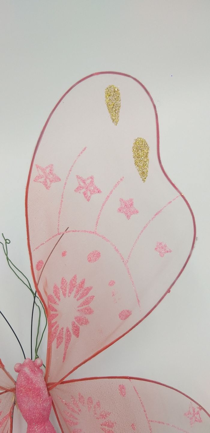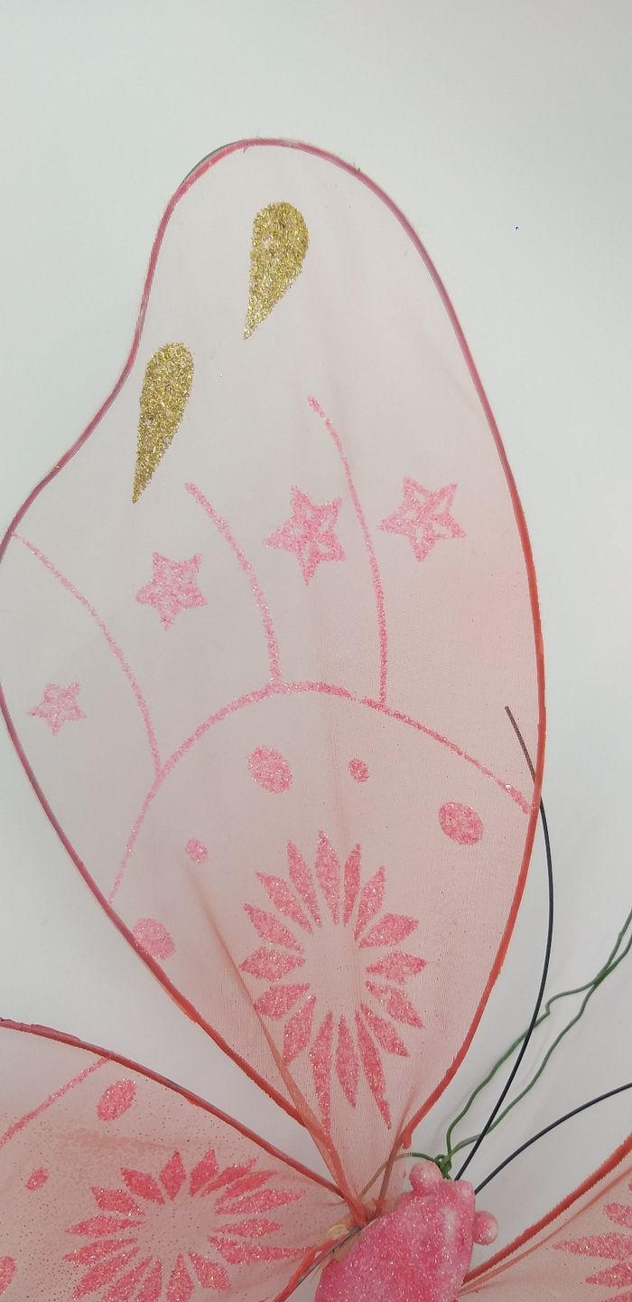 Entourage fait de métal, garnissage " en voile " Couleur rose, or et paillettes Le papillon s'attache avec un lien métallique Les ailes sont modulables selon vos envies #evaura76 #décoration #papillon