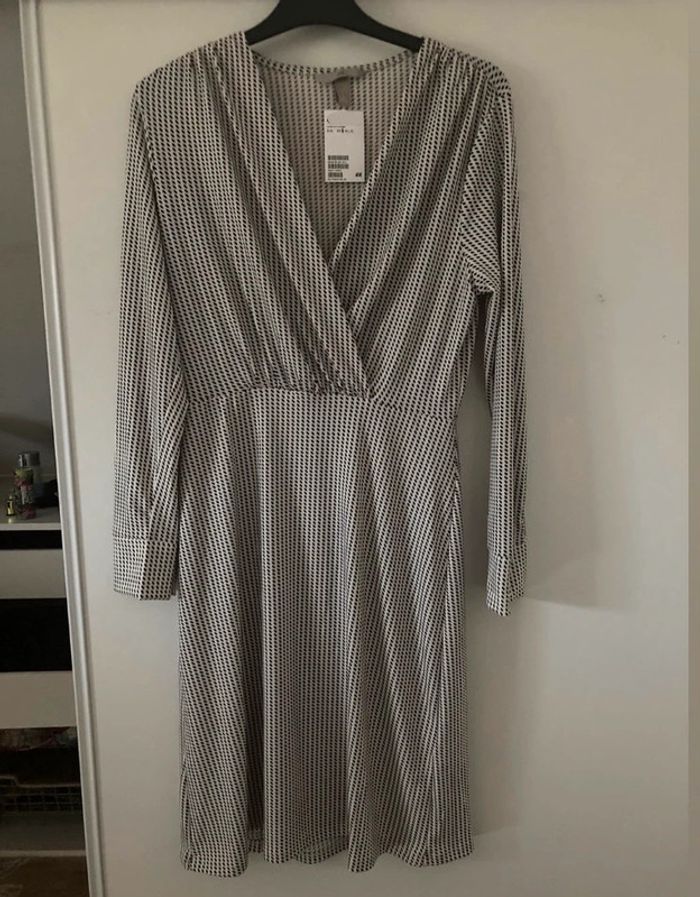 Robe à motif de couleurs blanche et noire neuve avec étiquette. Petits détails des boutons sur la manche (2eme photo). Taille S sur étiquette mais convient plutôt à une taille M selon moi. N’hésitez pas à me contacter pour plus de renseignements !