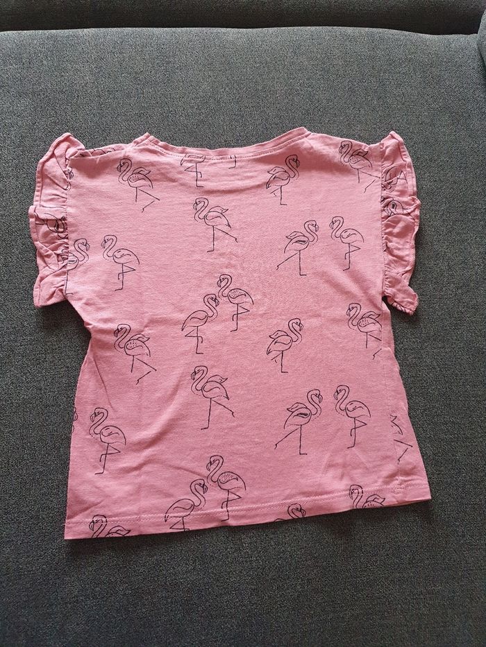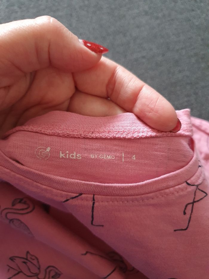 A vendre tee shirt motif flamant rose, marque Gémo, taille 4 ans. En très bon état ! N'hésitez pas à jeter un coup d'œil sur mon dressing (d'autres combishorts et vêtements en vente). Une réduction dès 2 articles achetés !