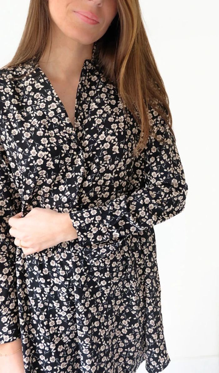 🌟 Robe noir et beige à fleurs manches longues - photo numéro 5