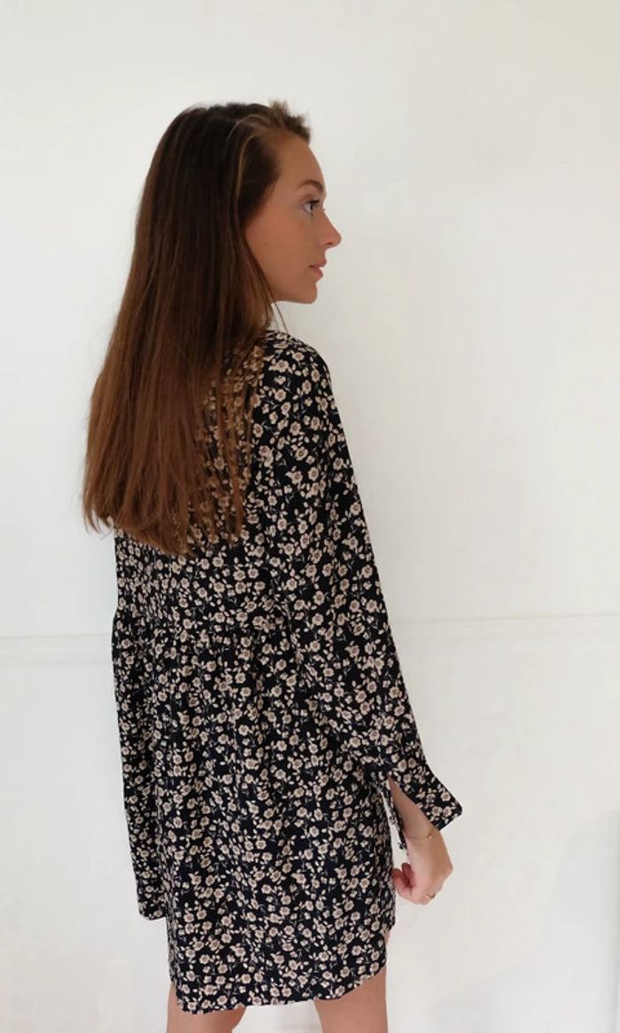 🌟 Robe noir et beige à fleurs manches longues - photo numéro 4