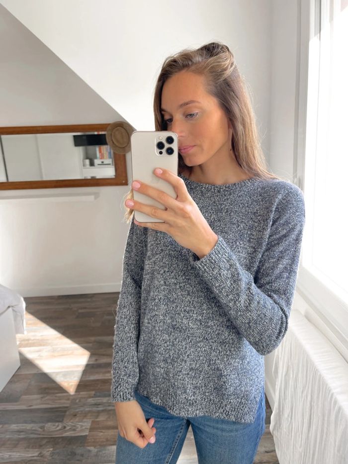 Pull bleu marine et blanc Mango - photo numéro 7