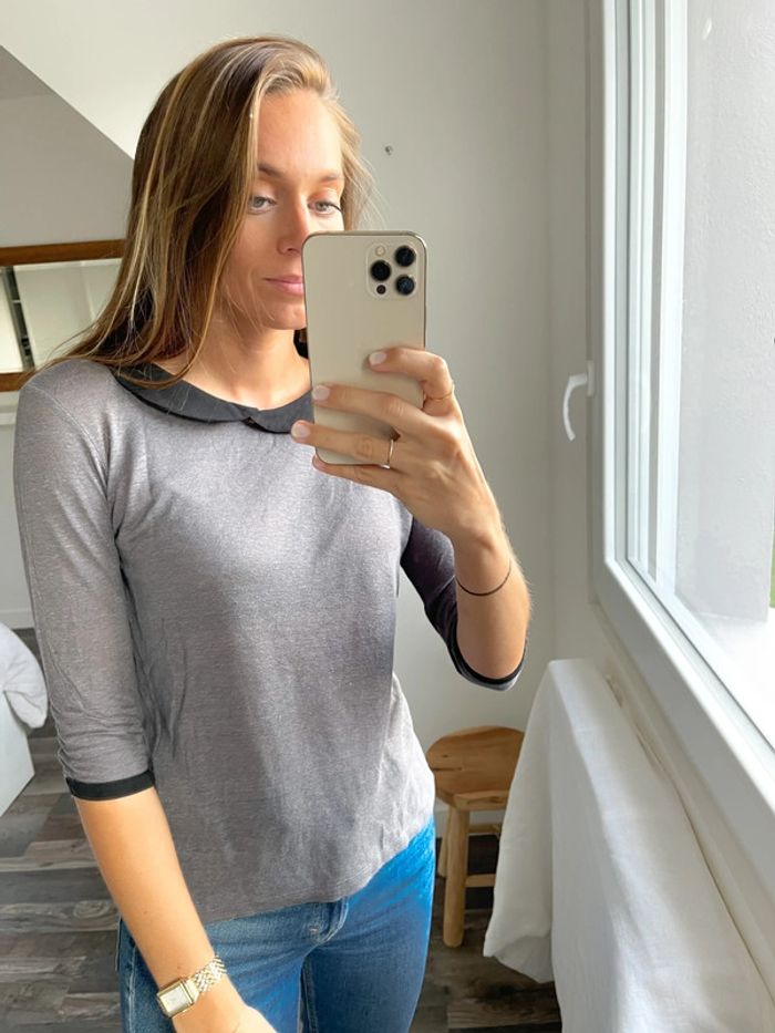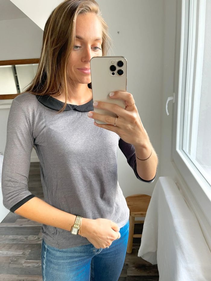 Hauts gris avec col claudine noir Zara - photo numéro 5