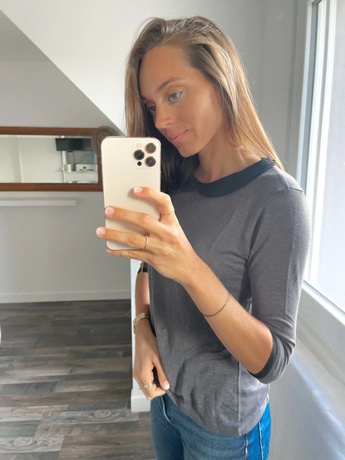 Hauts gris avec col claudine noir Zara - photo numéro 1