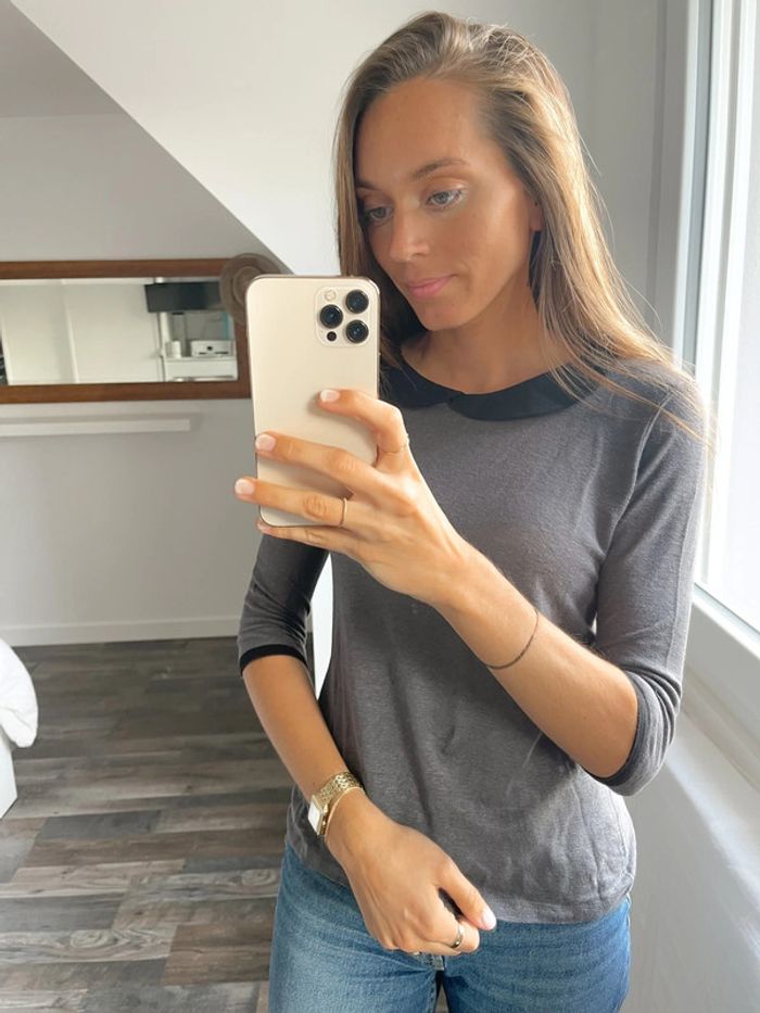 Hauts gris avec col claudine noir Zara - photo numéro 7