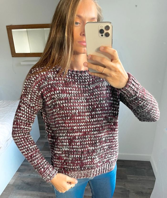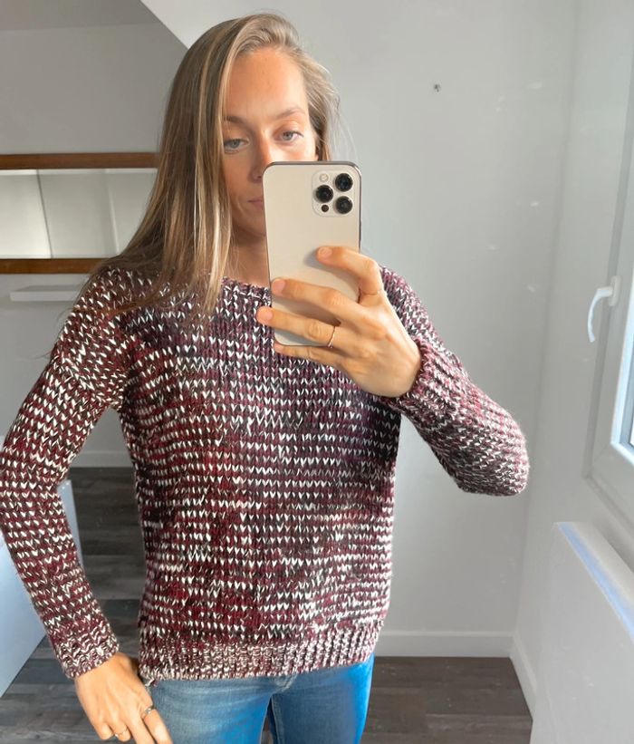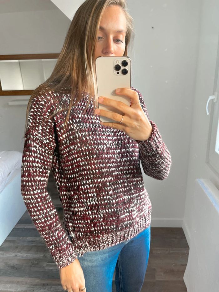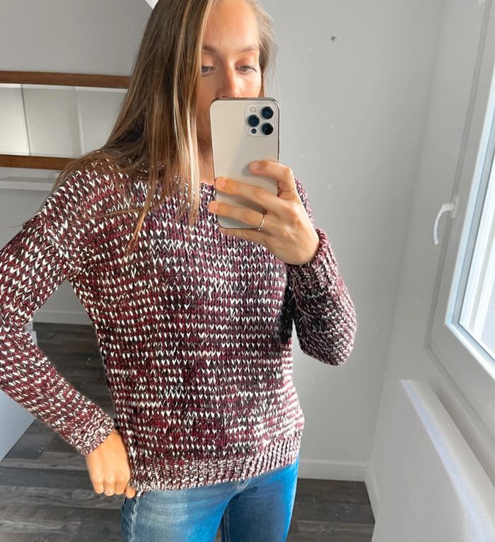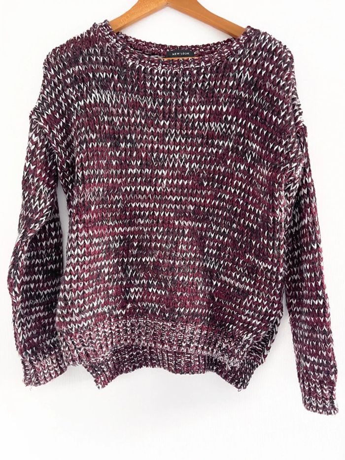 Pull bordeaux blanc et noir New Look - photo numéro 1