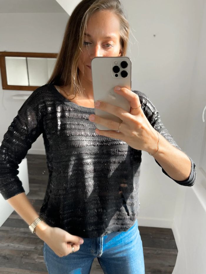 Pull noir argenté H&M - photo numéro 1