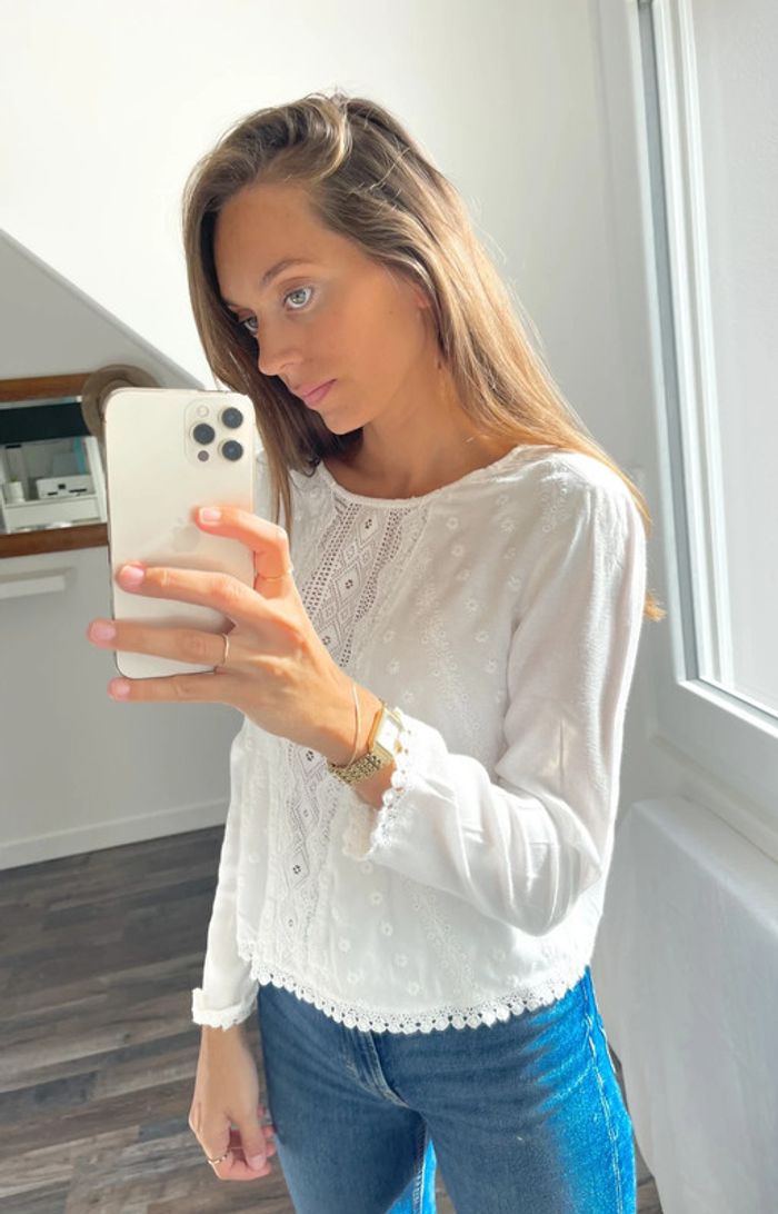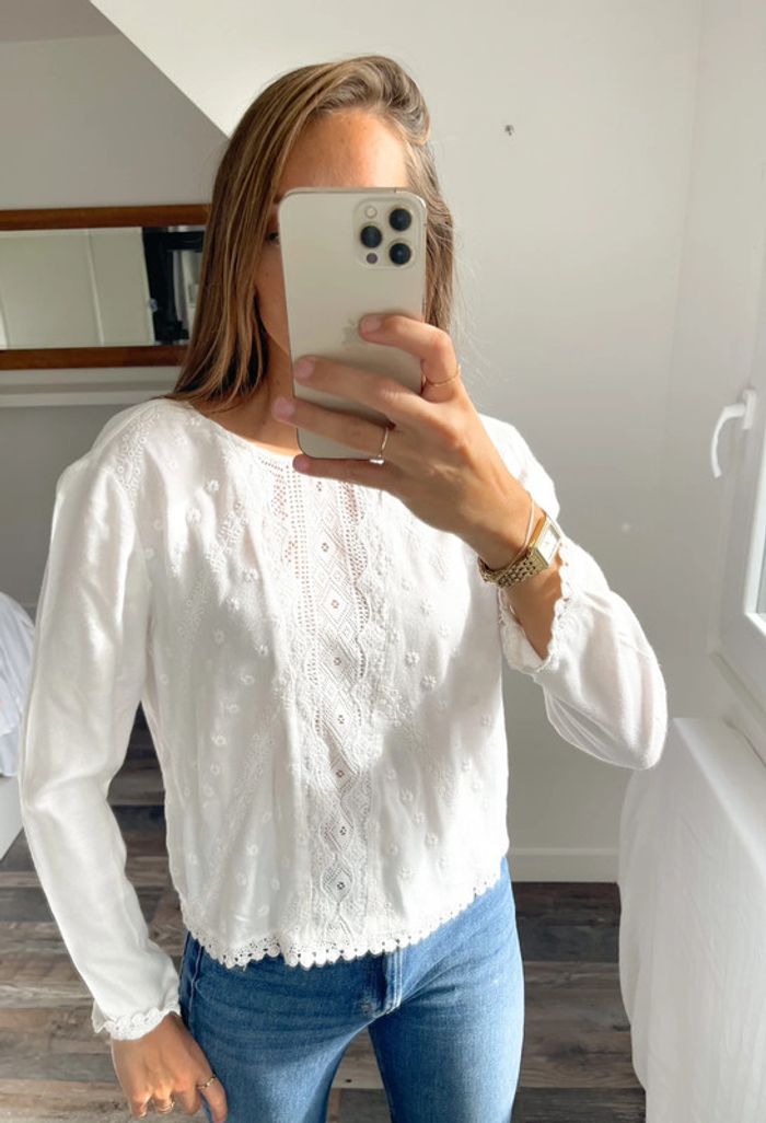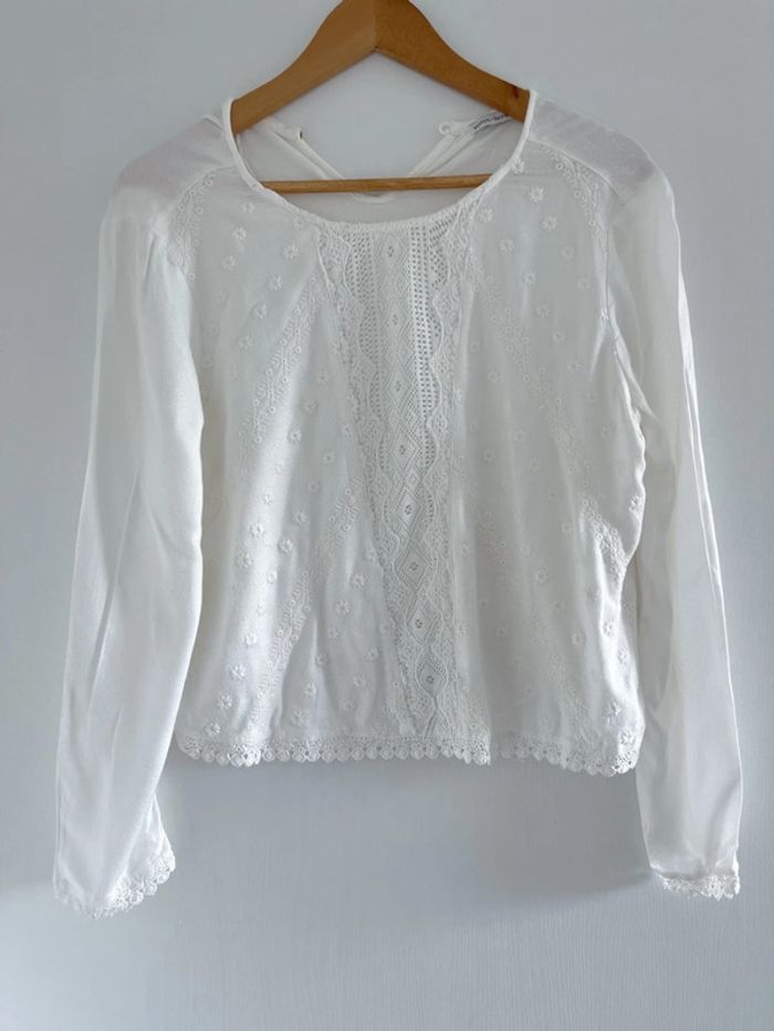 Blouse blanche à broderie Bershka - photo numéro 1