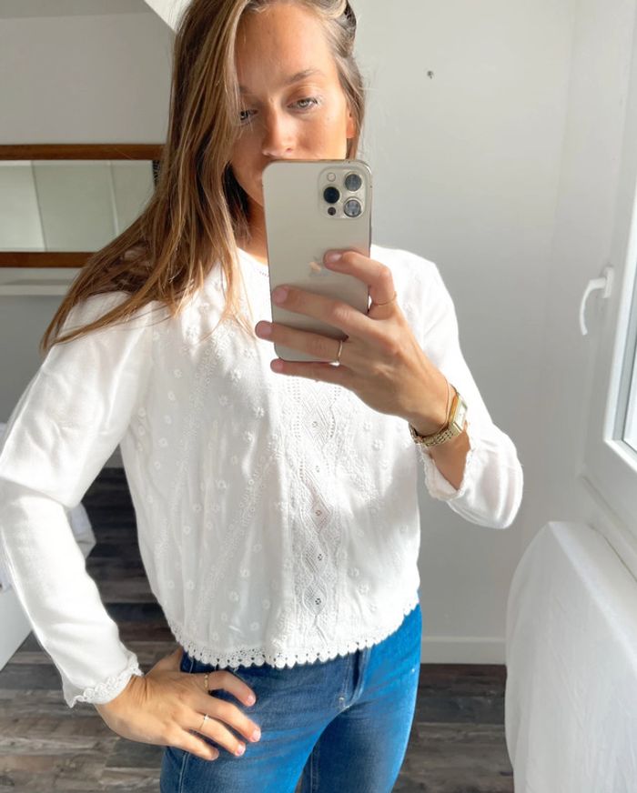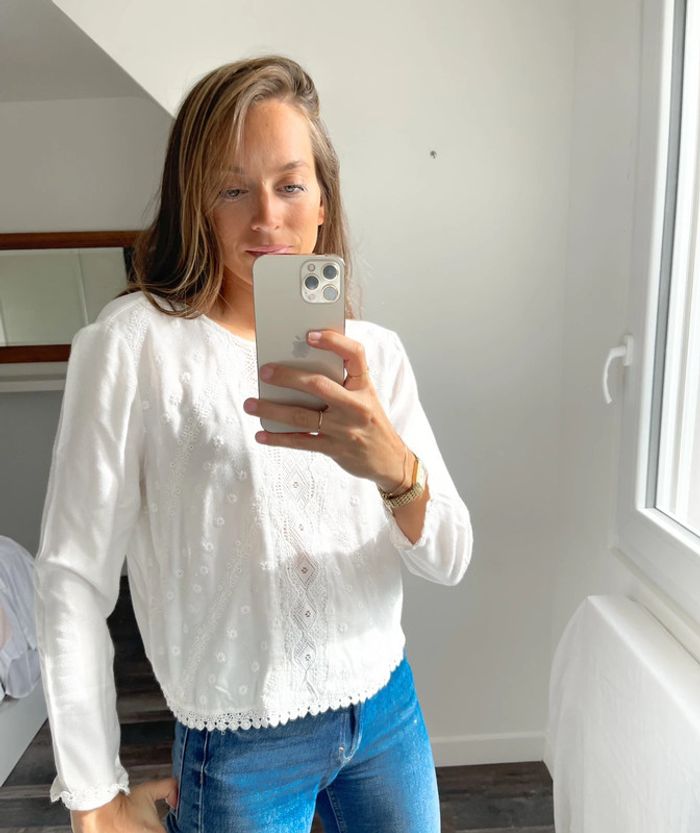 Blouse blanche à broderie Bershka - photo numéro 11