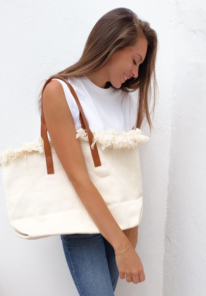 🌟 Sac beige à franges avec anse marron