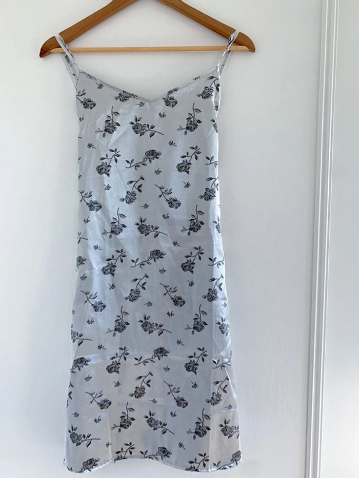 Robe lingerie nuisette gris à fleurs - photo numéro 2