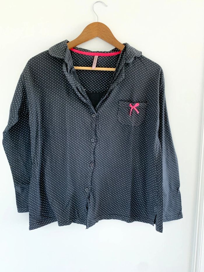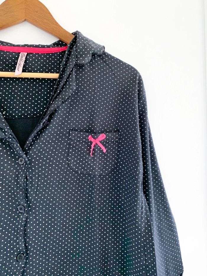Haut pyjama chemise noir à pois blanc - photo numéro 1