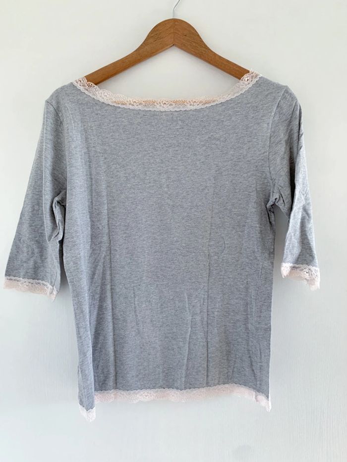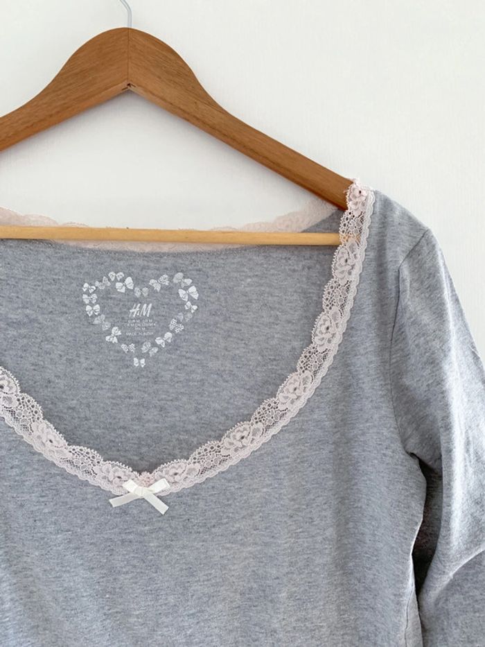 Haut pyjama gris et blanc à dentelle H&M - photo numéro 3