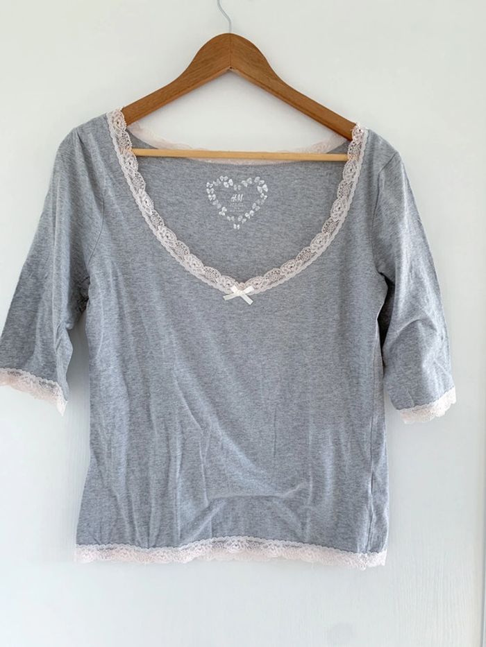 Haut pyjama gris et blanc à dentelle H&M - photo numéro 1