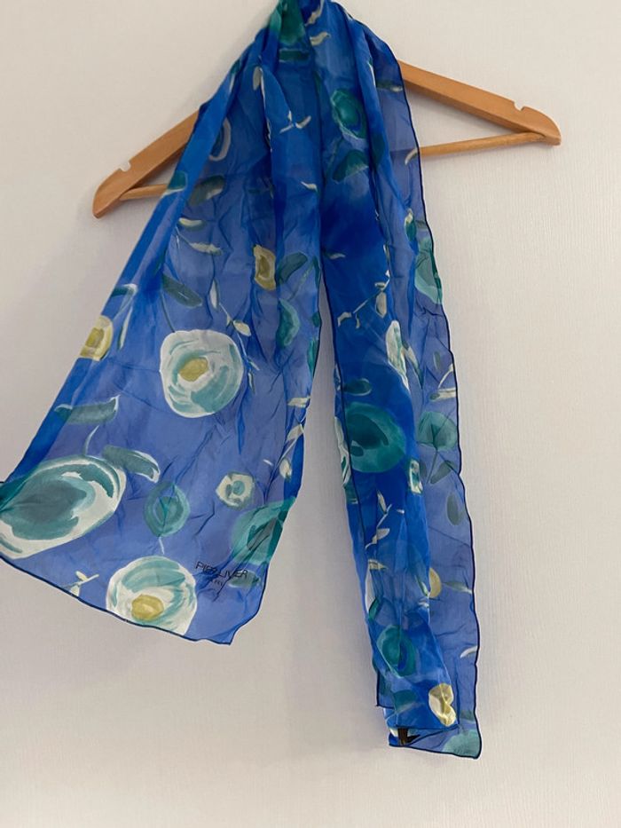 Foulard bleu à fleurs - photo numéro 1