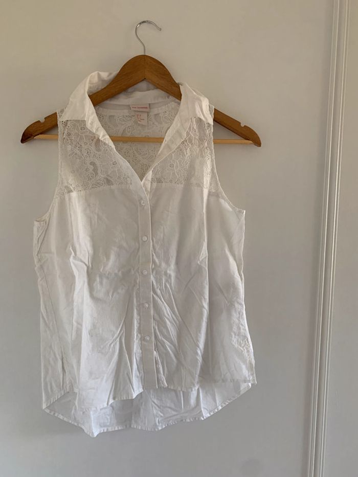 Chemise sans manches blanche à broderie H&M - photo numéro 1