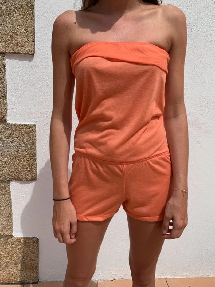 Combishort bustier orangé à volant - photo numéro 1