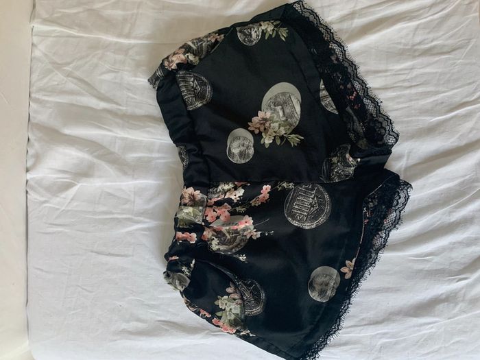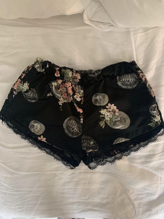 Short noir et rose à fleurs et à dentelle - photo numéro 1