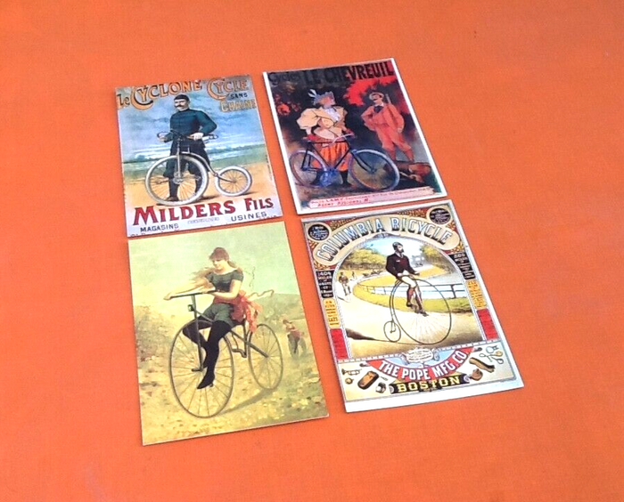 4 Cartes postales Nos Cyclistes - Le Cyclone Cycle sans chaine Milders Fils - Cycles Le Chevreuil Jules Lamy - Nos Cycles - Columbia Bicycle Editions Nugeron France (150x105)mm Poids totale : 18grs