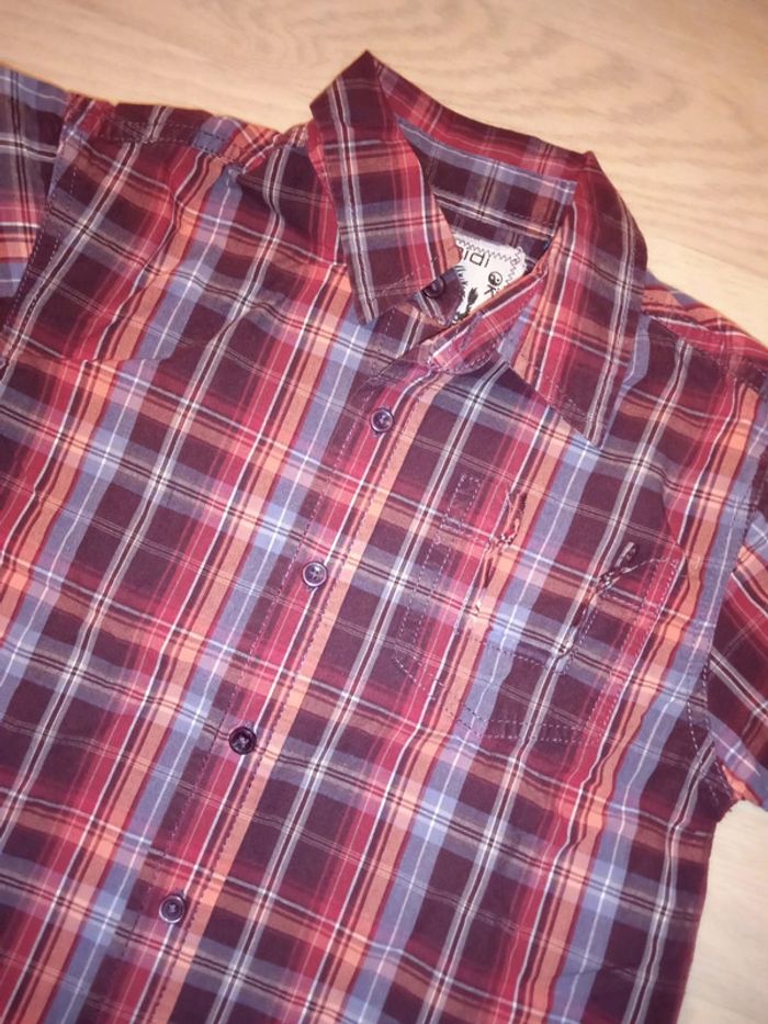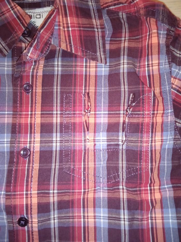 Chemise à carreaux marron, orange et gris Avec poche déchirée, mais c'est d'origine, ça fait le charme de la chemise Marque : Okaïdi T. 6 ans Très bon état général #bebelle_78garcon_6_ans