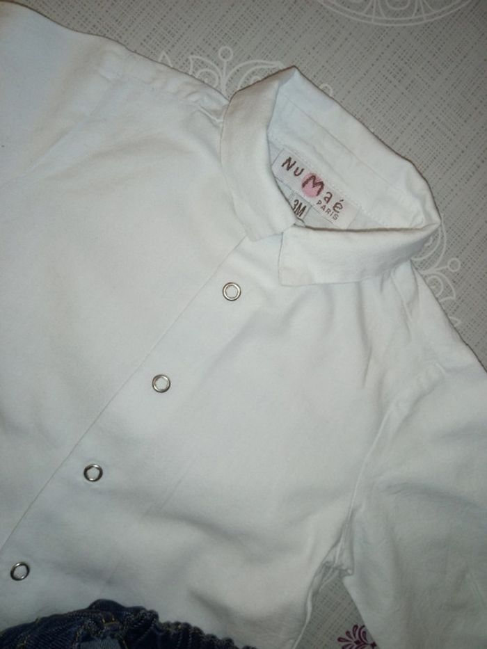 Ensemble chemise blanche en lin et jean's Numaé Paris T. 3 mois Neuf - photo numéro 3