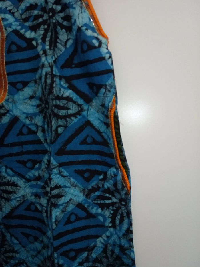 Robe africaine wax bleu turquoise et broderie orange Neuve - photo numéro 4