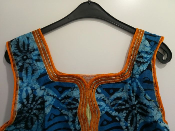 Robe africaine wax bleu turquoise et broderie orange Neuve - photo numéro 5