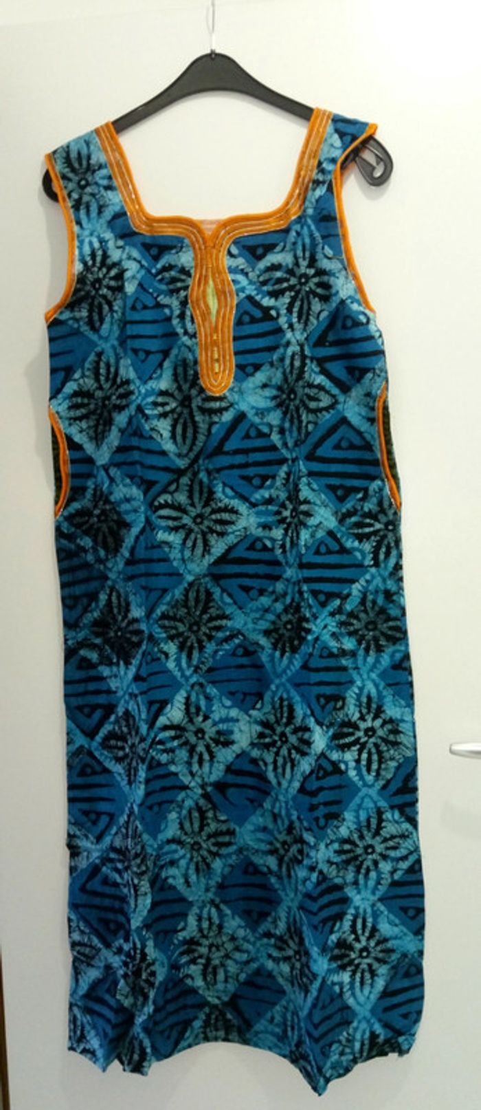 Robe africaine wax bleu turquoise et broderie orange Neuve - photo numéro 1