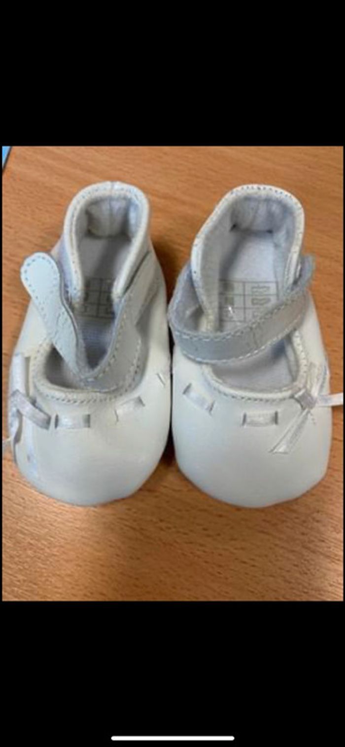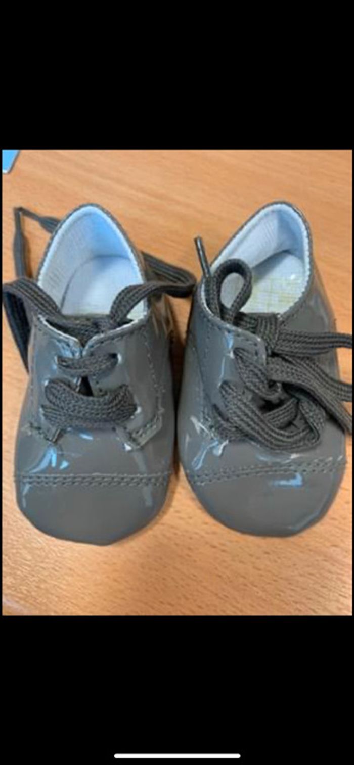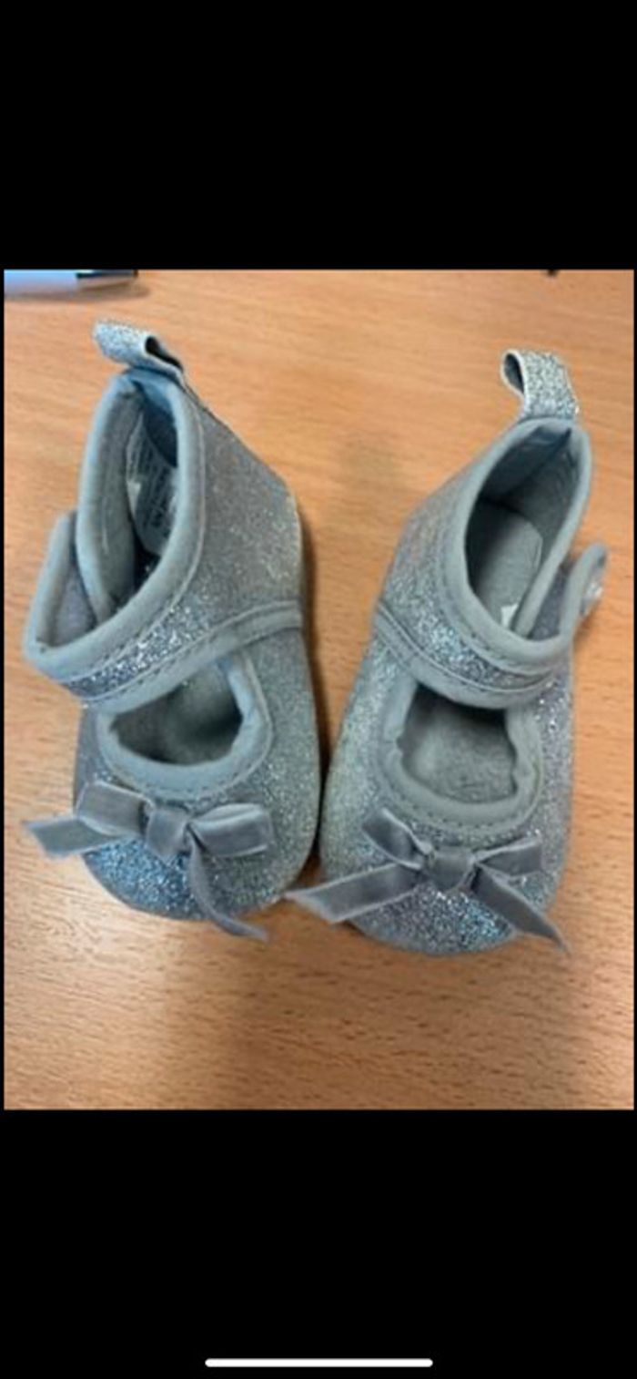 lot pour bébé : chaussures vernies grises(portées une fois) chaussures blanches (neuves) chaussures à paillettes chaussons « souris » gris 2 paires de moufles nouveau né (jamais portées, juste lavées)