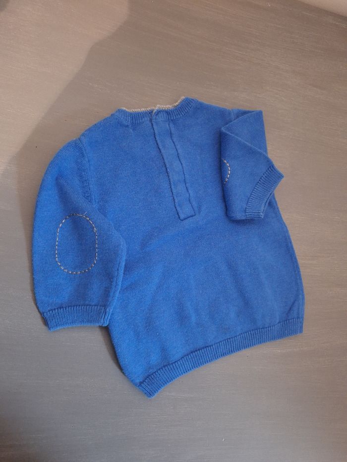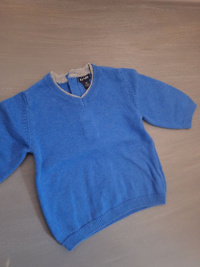 GARÇON 1 MOIS N°491 Pull fin Bleu / gris Col v , pression au dos 100% coton Taille 1 mois Kiabi 2€ #kelly_garçon1mois